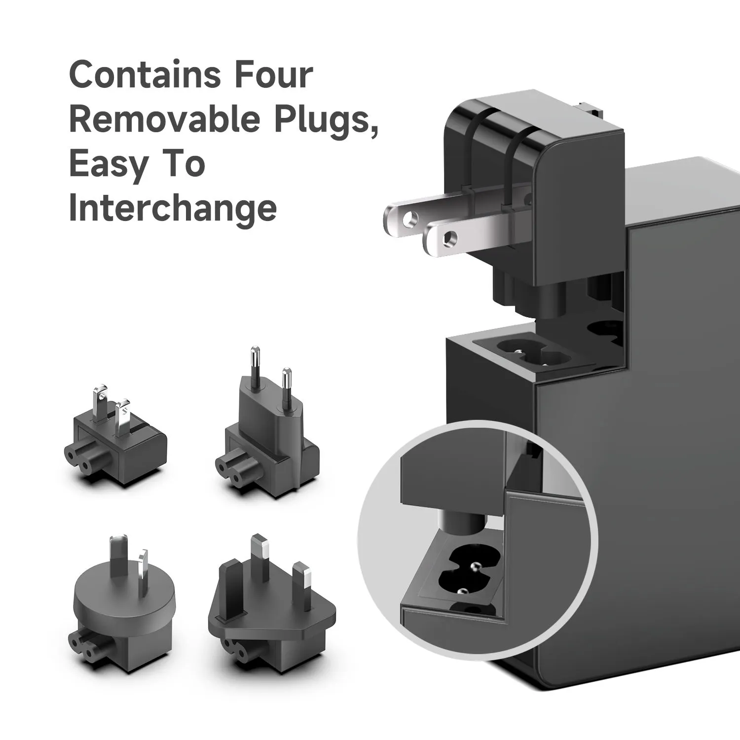 Multi-standaard stekkers: STARWELL voedingsadapter is uitgerust met 4 soorten klikstekkers (VS, EU, VK en AU), geen extra converters nodig voor grensoverschrijdend reizen.