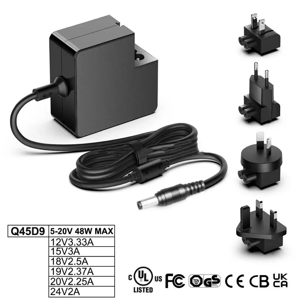 12V/3,33A, 15V/3A, 18V/2,5A, 19V/2,37A, 19V/2,53A, 20V/2,25A, 24V/2A |