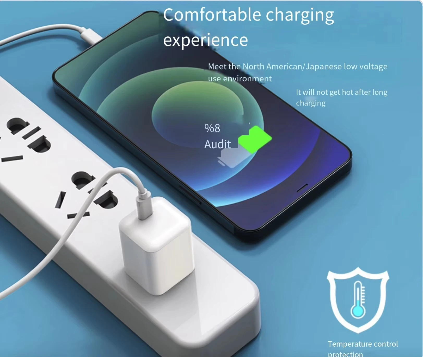 STARWELL hoogwaardige 20W Japan Plug snellader, ook wel 20W PD-snellader genoemd met USB-C- en Type-C-poorten, ondersteunt snel opladen voor iPhones en Android-apparaten en bereikt 0-50% in 30 minuten. Het beschikt over meerdere beveiligingen, waaronder overstroom, overspanning en kortsluiting, waardoor veilige en betrouwbare prestaties worden gegarandeerd. Het is gemaakt van vuurvast pc-materiaal en voldoet aan de CE- en ETL-certificeringen, waardoor het voldoet aan de EU-veiligheidsnormen en de markttoegang wordt verbeterd.