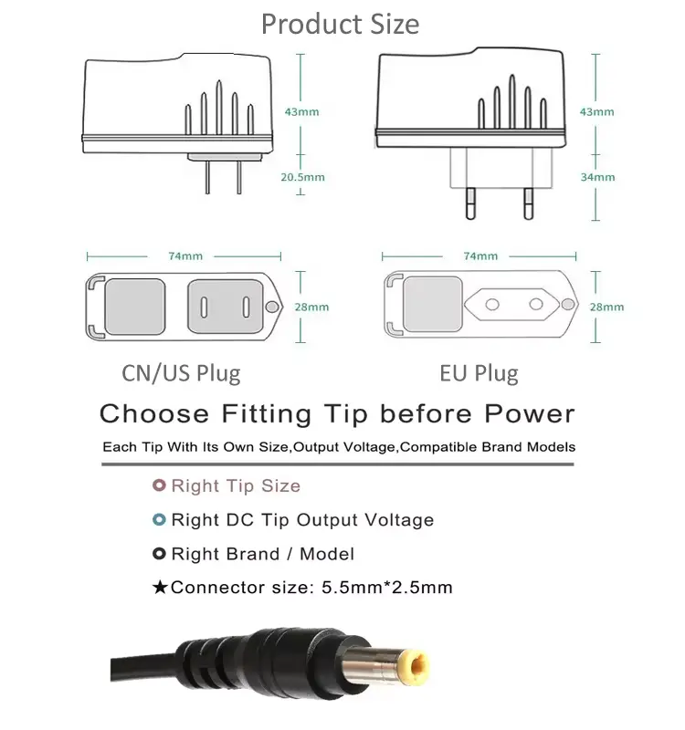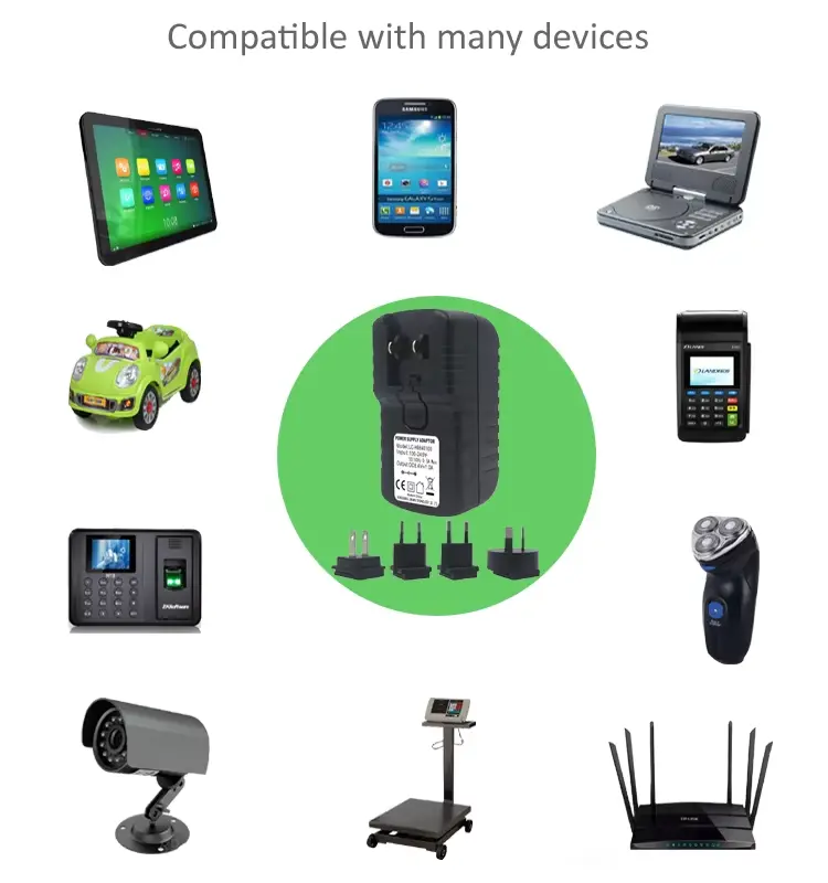 Hoogwaardige 24W-voedingsadapter wordt aangeboden door de Chinese fabrikant Starwell, onze adapter heeft soorten stekkers, zoals Amerikaanse, Britse, EU- en AU-stekkers.