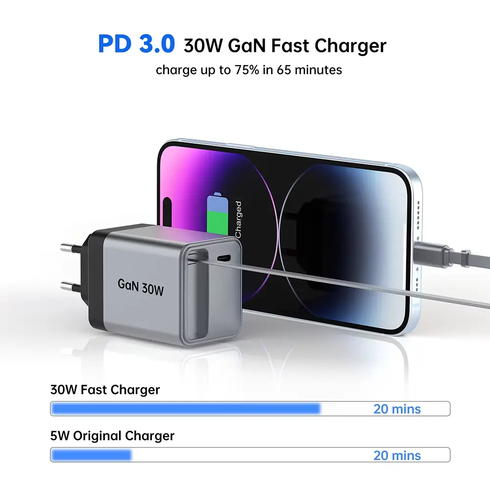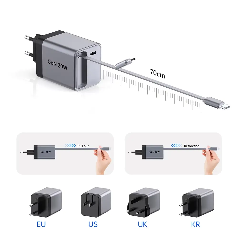 Productnaam: 30 W GaN PD rekbare kabel, snelle oplader |
