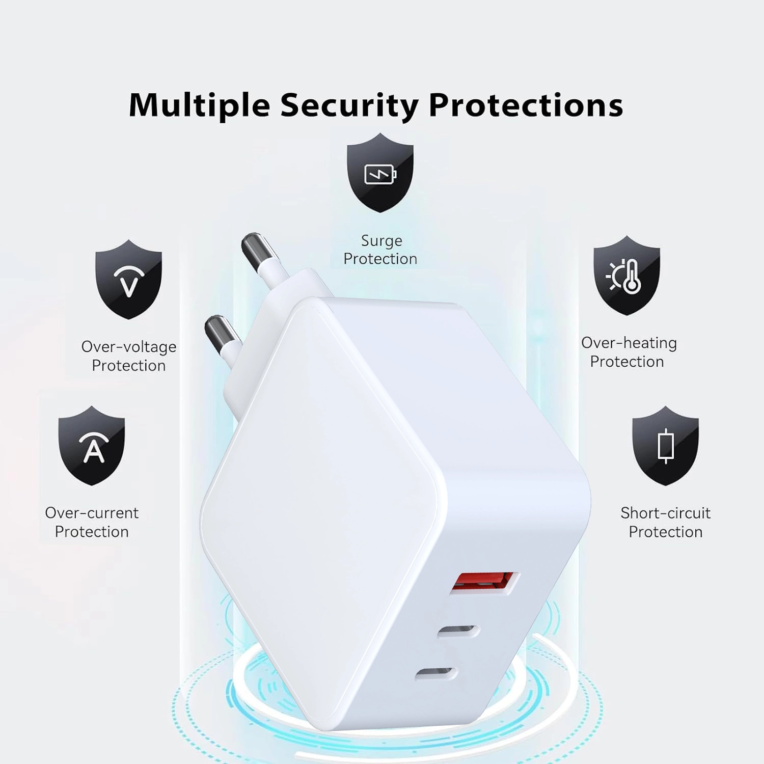 Slim opladen met meerdere poorten - Uitgerust met dubbele USB-C- en USB-A-poorten, kunt u meerdere apparaten tegelijkertijd opladen zonder de snelheid te beïnvloeden.