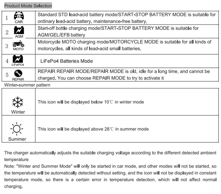 Brede ondersteuning voor batterijtypes: Compatibel met verschillende batterijchemie, waaronder Standard Flooded (Wet), AGM (Absorbent Glass Mat), Gel en Calcium-batterijen, waardoor een optimaal opladen voor elk specifiek type wordt gegarandeerd.