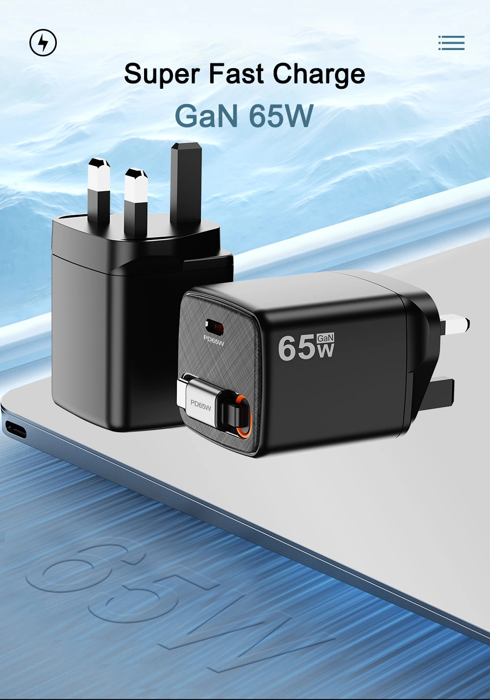 UK-stekkertype 65W snellader |